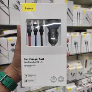 - Baseus digital display dual USB 4.8a car charger 24w with three primary colors